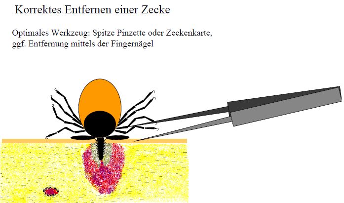 "Korrektes Entfernen einer Zecke - Optimales Werkzeug: Spitze Pinzette oder Zeckenkarte, ggf. Entfernung mittels der Fingernägel"